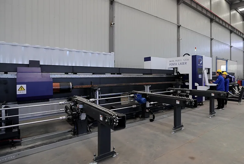 We possess integrated frame steel production lines with highlights of laser cutting and submerged arc welding process.